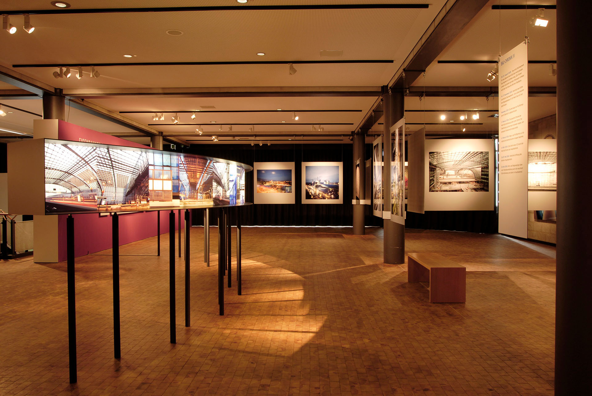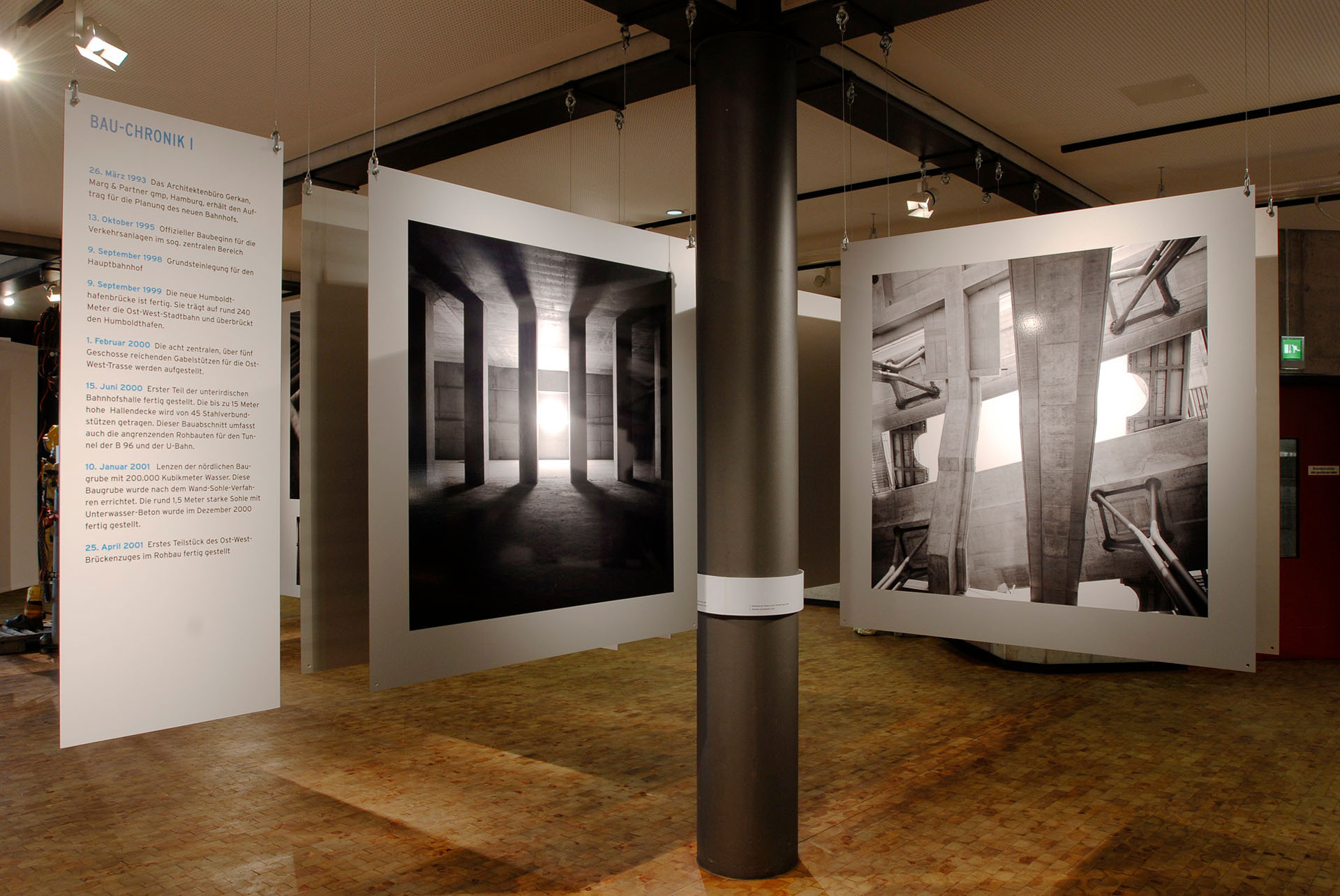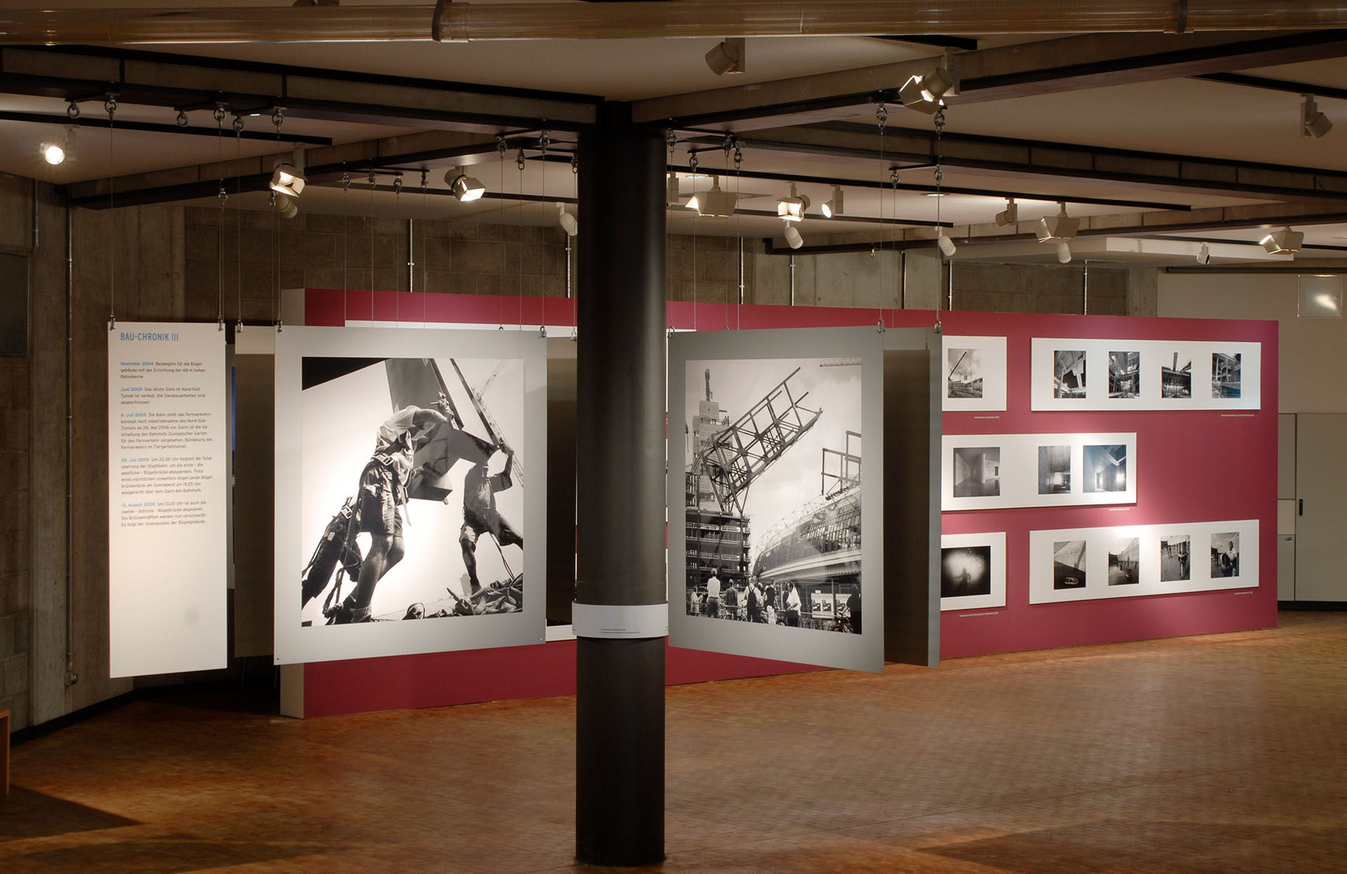 Die Auswahl von rund 100 überwiegend großformatigen Motiven gewährt außergewöhnliche Einblicke in den Bauprozess. Viele der Ansichten sind spätestens mit der Fertigstellung des Hauptbahnhofes nicht mehr sichtbar. Zahlreiche kleinere Serien- und Detailaufnahmen, ein Dokumentarfilm sowie eine Informationswand geben darüber hinaus Auskunft über bautechnische Besonderheiten